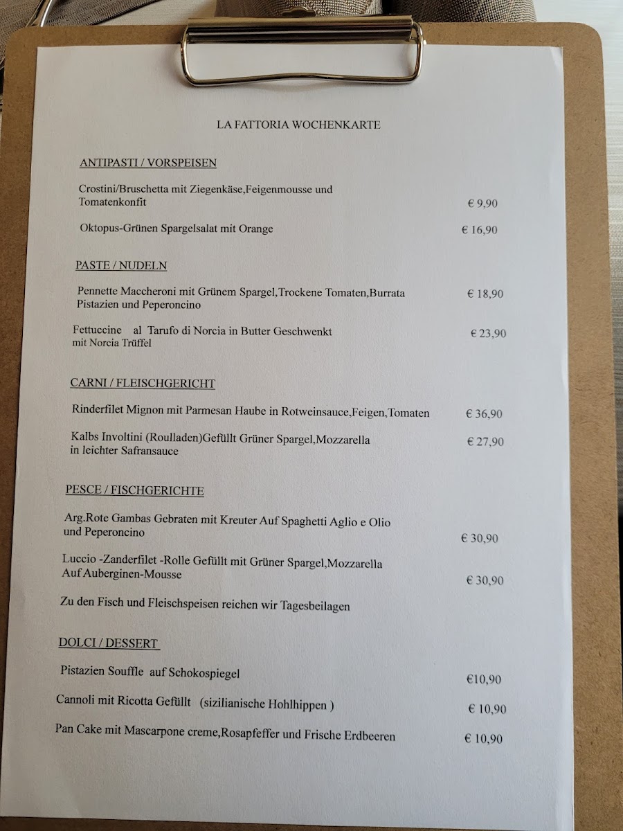Welcome to Ristorante La Fattoria, a charming Italian oasis located at Himmelsgasse 8, Idstein, Germany. This restaurant is a true celebration of Italian culinary traditions, brought to life by its passionate Italian owner. The menu features a delightful array of dishes, from tender Saltimbocca alla Romana to exquisite Duetto di Pesce al Forno, highlighting the freshest ingredients prepared with authentic techniques.